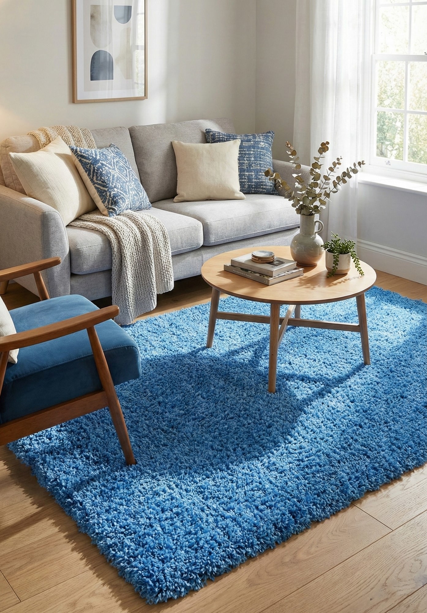 Заввишки 40 мм, його м'який ворс дарує приємні відчуття на дотик, забезпечуючи шумоізоляцію та створюючи атмосферу тепла й затишку у вашому домі. Сучасний дизайн в поєднанні з насиченим синім кольором, який не вигорає з часом, робить цей килим стильним доповненням будь-якого інтер'єру.