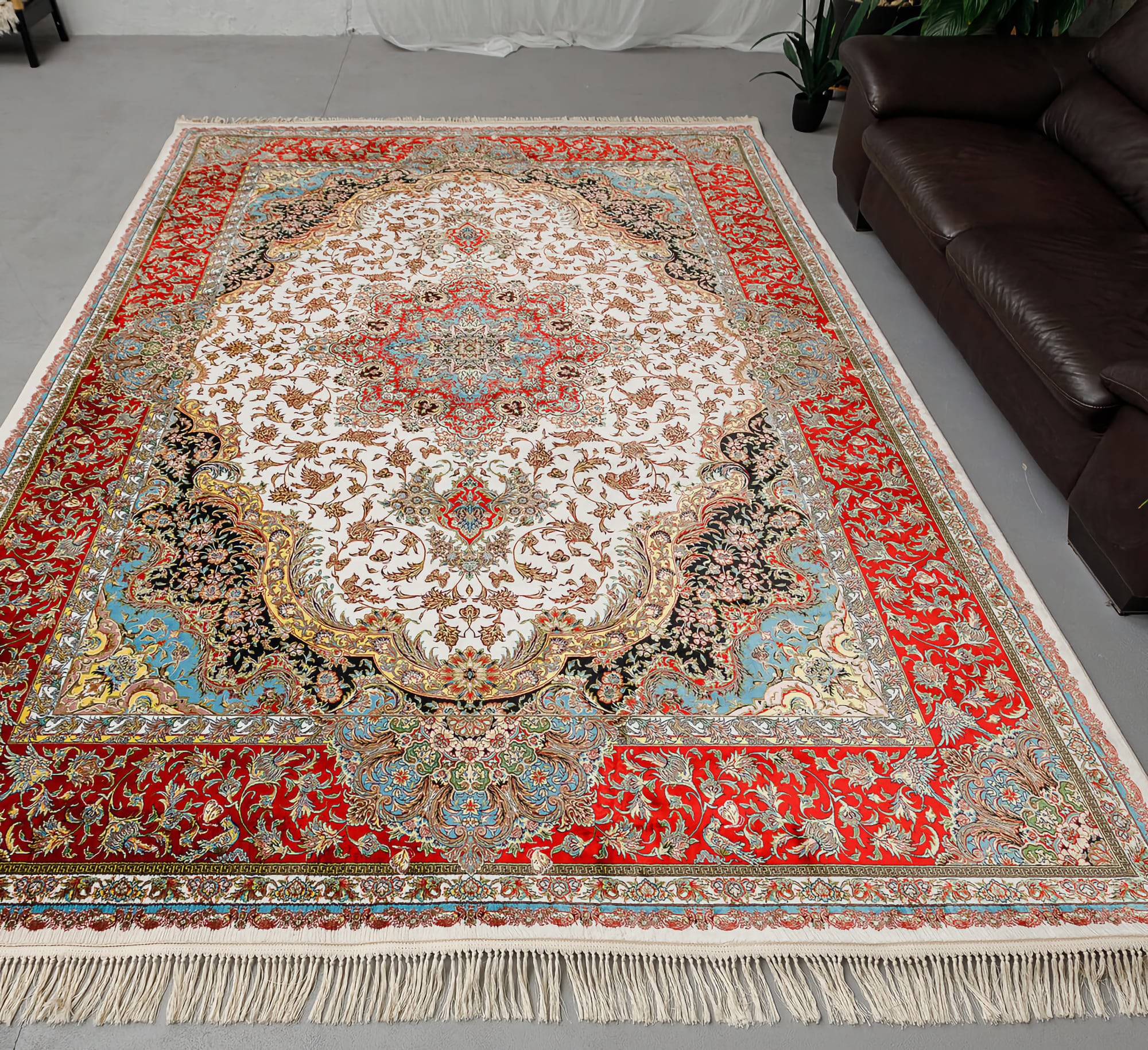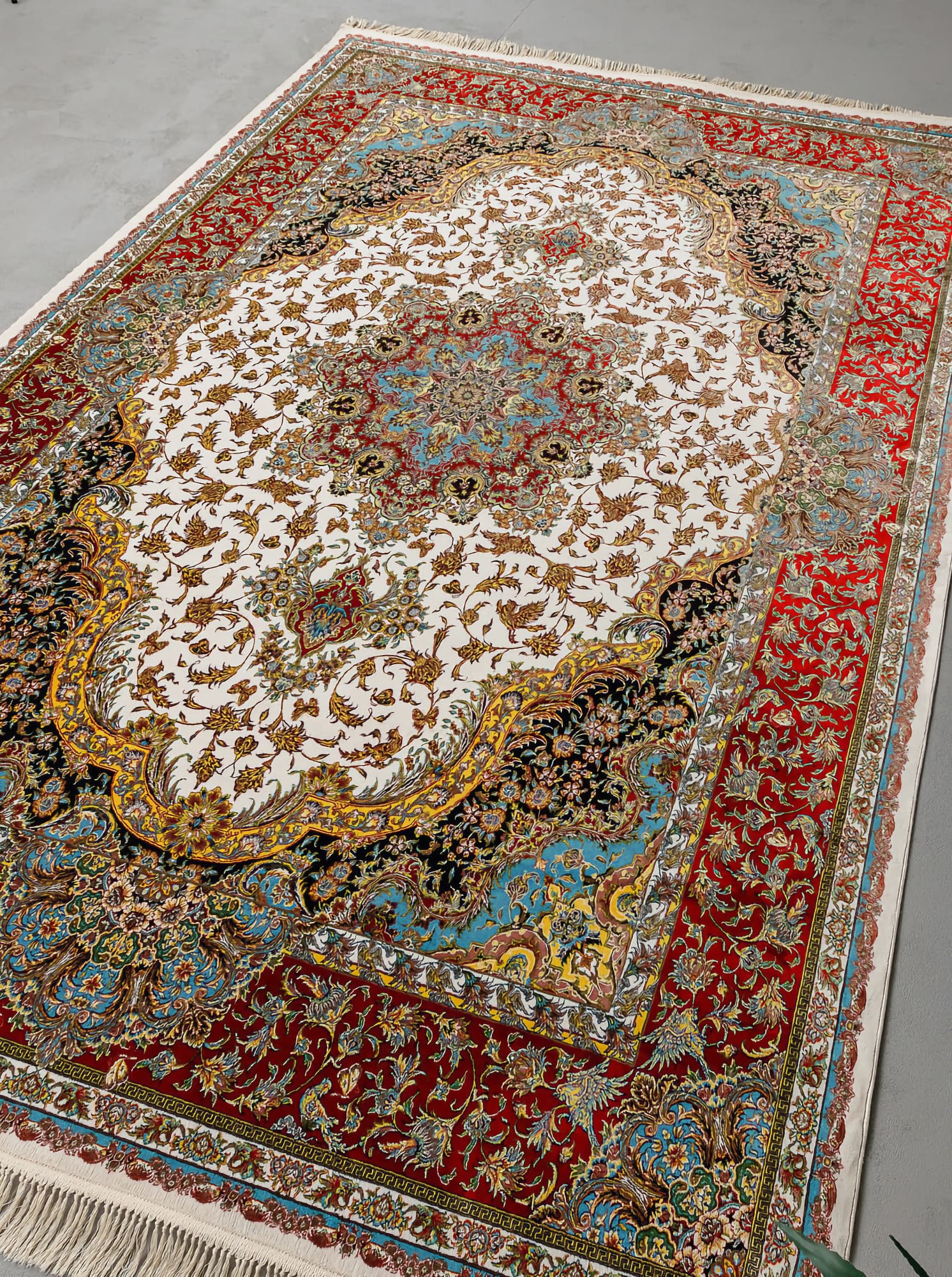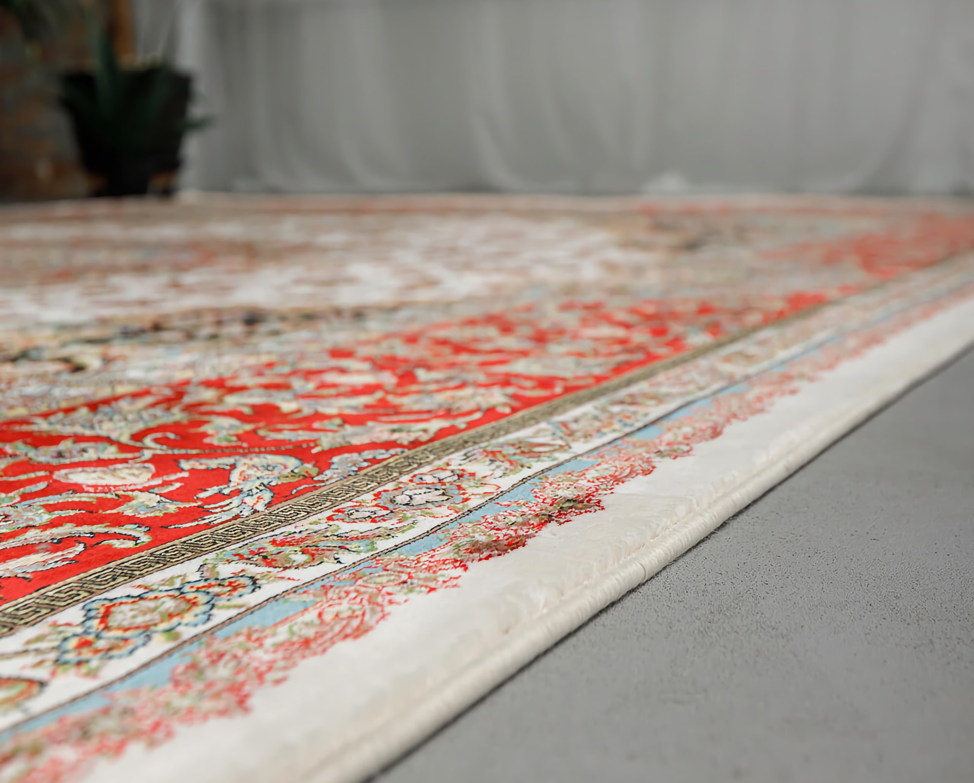 Іранський килим високої щільності Abbass в класичному східному стилі привносить елегантність у ваш інтер'єр. Його кольорова гамма виконана в гармонійних відтінках, таких як блакитний, що чудово підкреслює стиль. Відмітна риса - висока щільність ворсу, яка дозволяє створити складні та детальні візерунки.