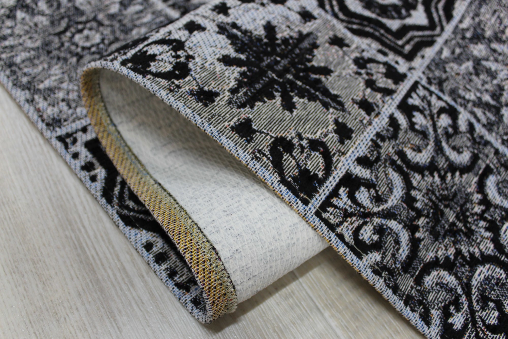 Єгипетський килим на гумовій основі Art 3 — це витончений елемент декору, який легко впишеться в будь-який інтер'єр. Він не лише прикрасить підлогу, але й додасть елегантності стінам. Завдяки використанню високоякісних змішаних ниток з бавовни, поліестеру та поліпропілену, цей килим прослужить вам багато років, зберігаючи яскравість кольорів протягом усього часу експлуатації.