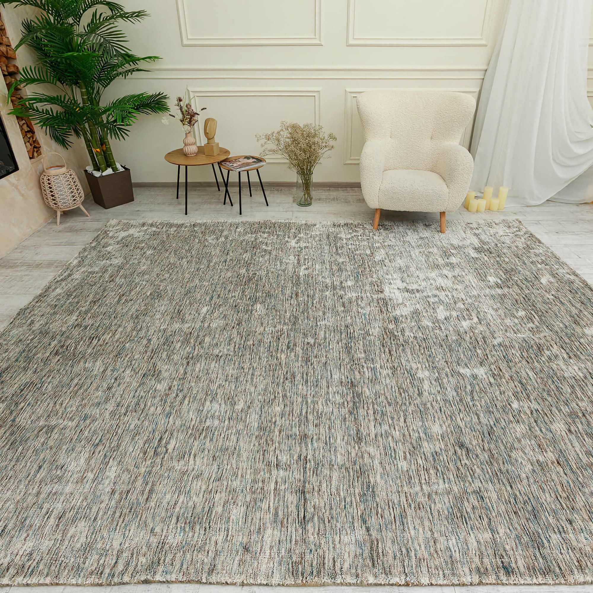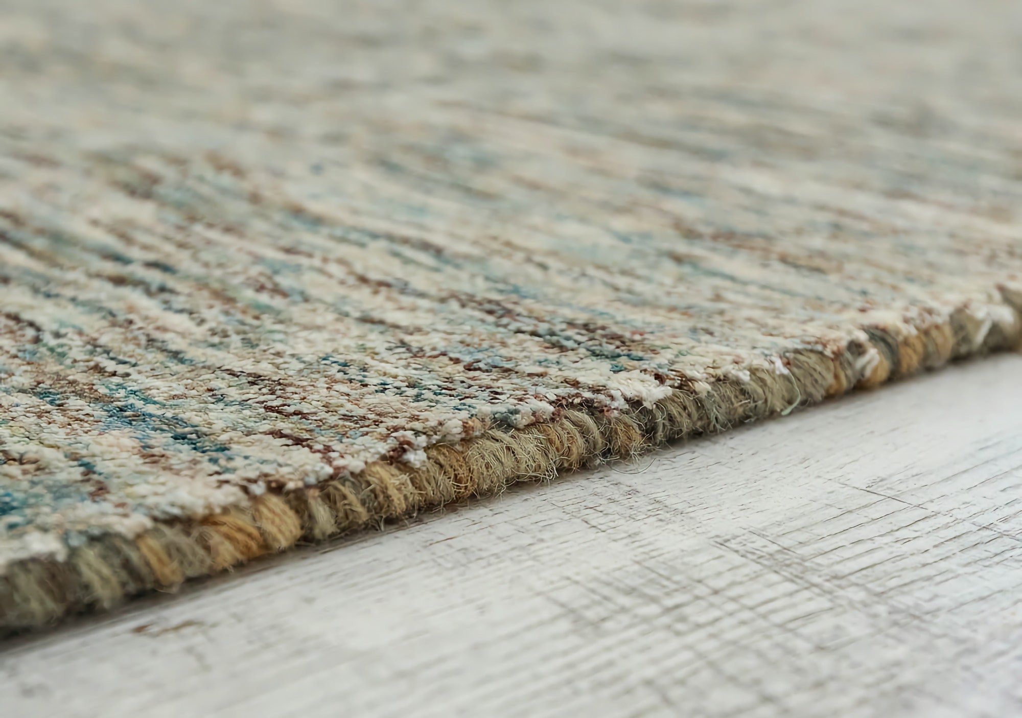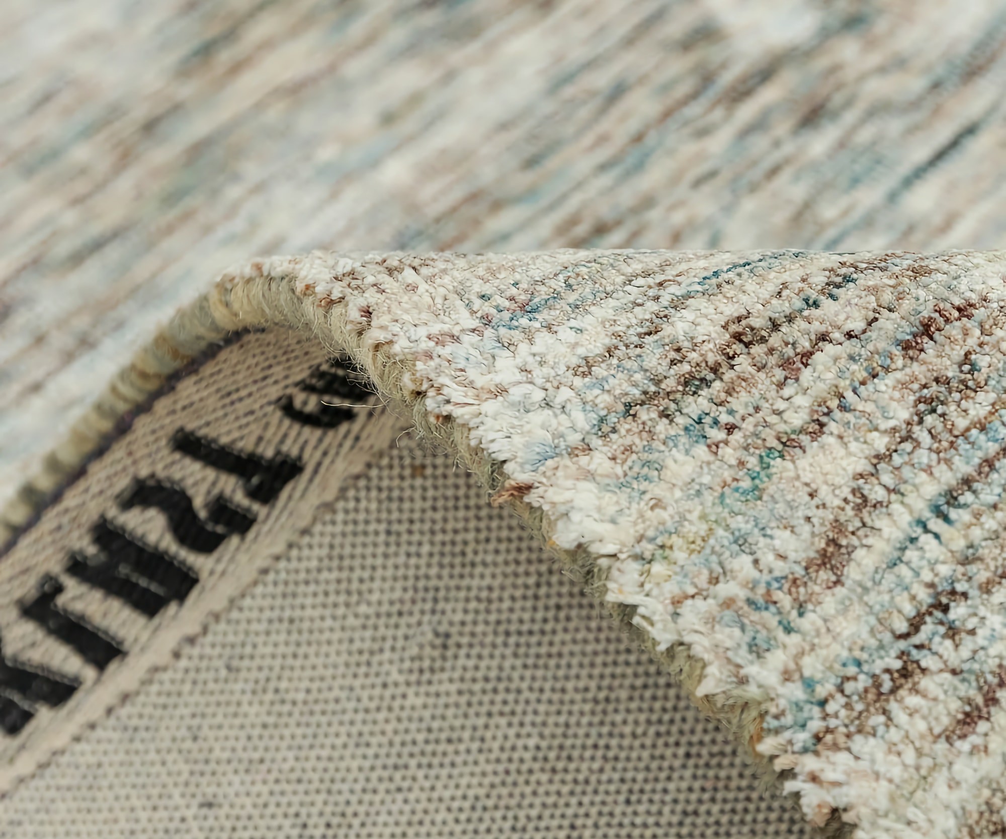 Індійський килим з колекції Azabi — це зразок сучасного дизайну, в якому поєднуються відмінне виконання, унікальний стиль і висока якість матеріалу. Кожен килим виготовляється методом ручного тафтингу, що включає ретельний і трудомісткий процес: спочатку вони створюються на сучасному машинному обладнанні, а потім проходять першокласну ручну обробку від найкращих майстрів.