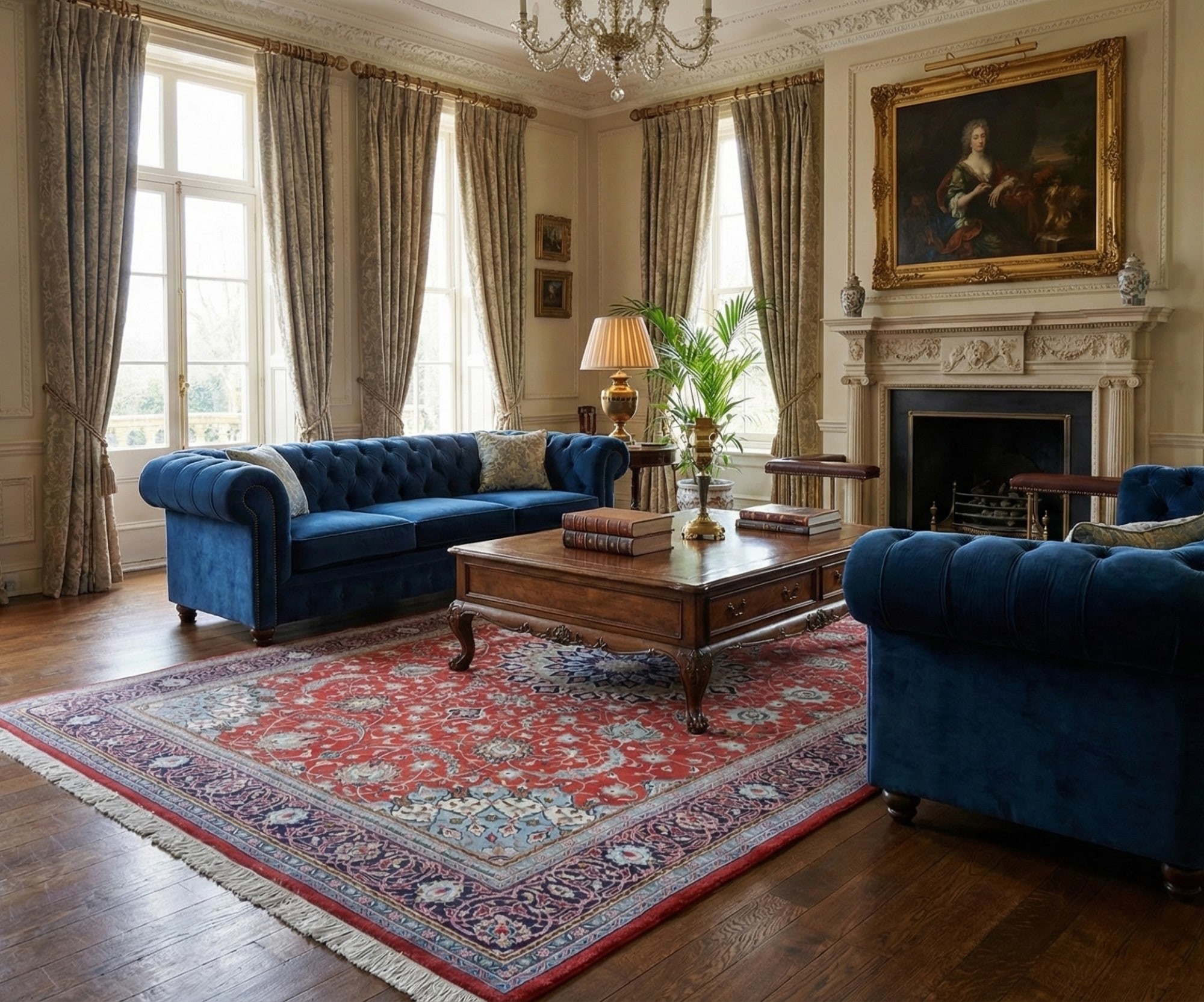 Цей вишуканий перський килим родом із міста Кешан (Іран) виконаний вручну із 100% натуральної вовни на бавовняній основі. Розкішна композиція з центральним медальйоном, квітковими мотивами та насиченим червоним фоном втілює класичні традиції іранського килимарства. Завдяки техніці ручного вузлового ткацтва з використанням перського вузла, виріб вирізняється високою деталізацією та щільністю плетіння — близько 212 000 вузлів на квадратний метр. Килим має великі розміри — 2.55 × 3.58 м, що робить його ідеальним для просторих інтер’єрів. Йому близько 40 років, і хоча на ньому помітні незначні сліди використання, загальний стан залишається добрим. Це не просто елемент інтер’єру, а частина історії та витонченого мистецтва, що додає глибини та характеру будь-якому приміщенню.