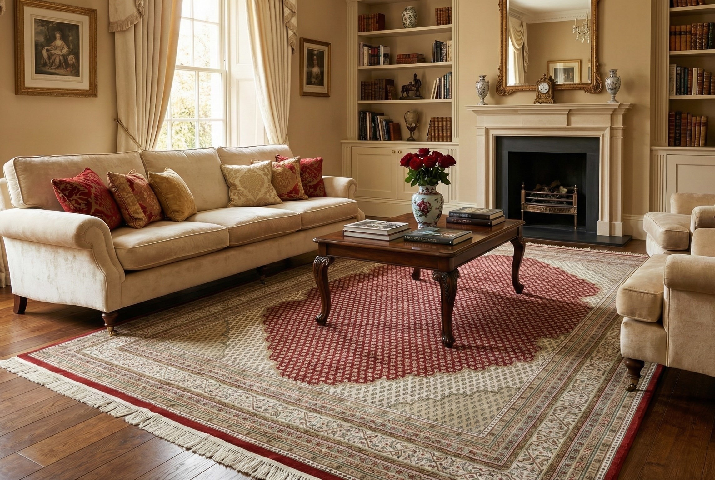 Килим виткано вручну з високоякісної вовни, що забезпечує м’якість ворсу та добру зносостійкість. Такий килим стане ідеальним акцентом у класичному інтер’єрі, додаючи йому тепла, стилю та культурної глибини.
