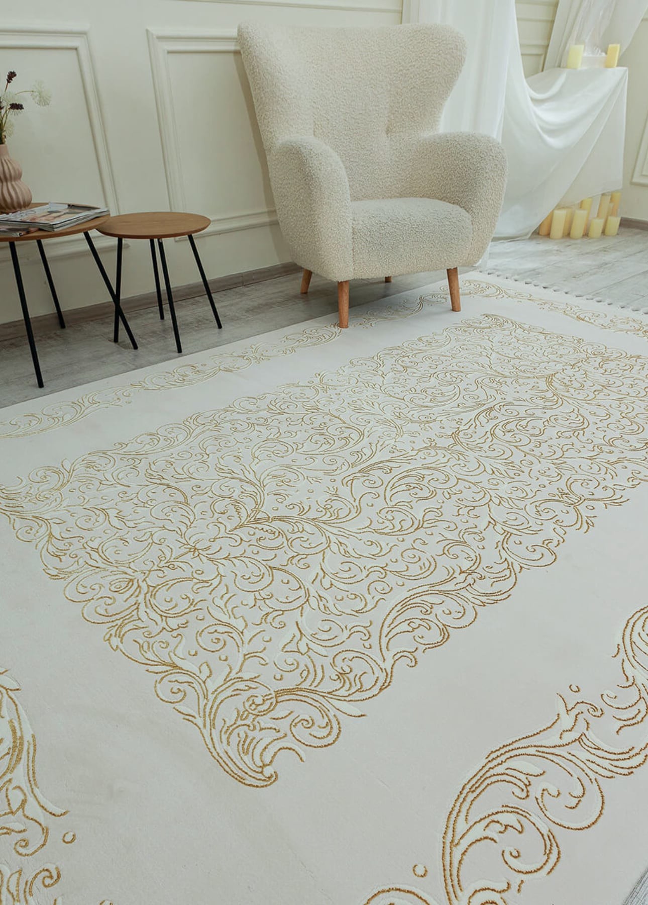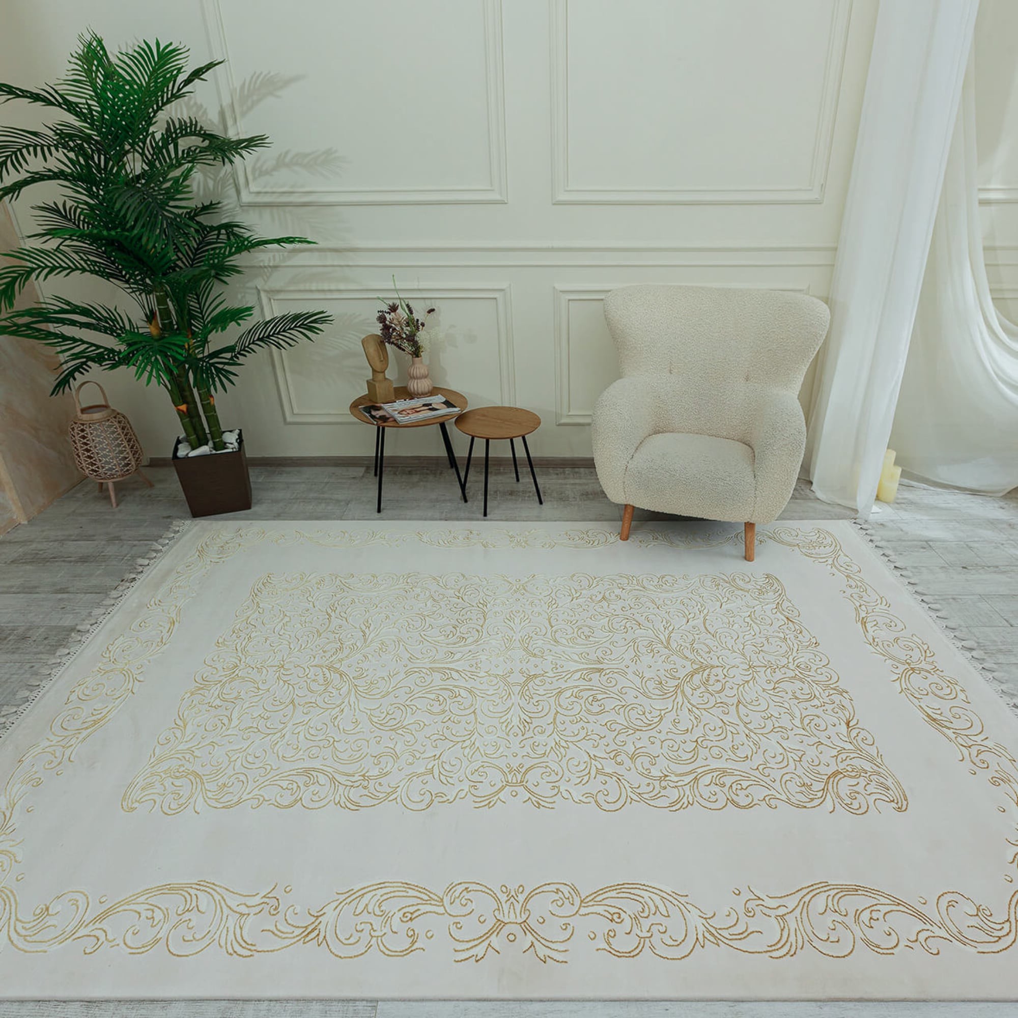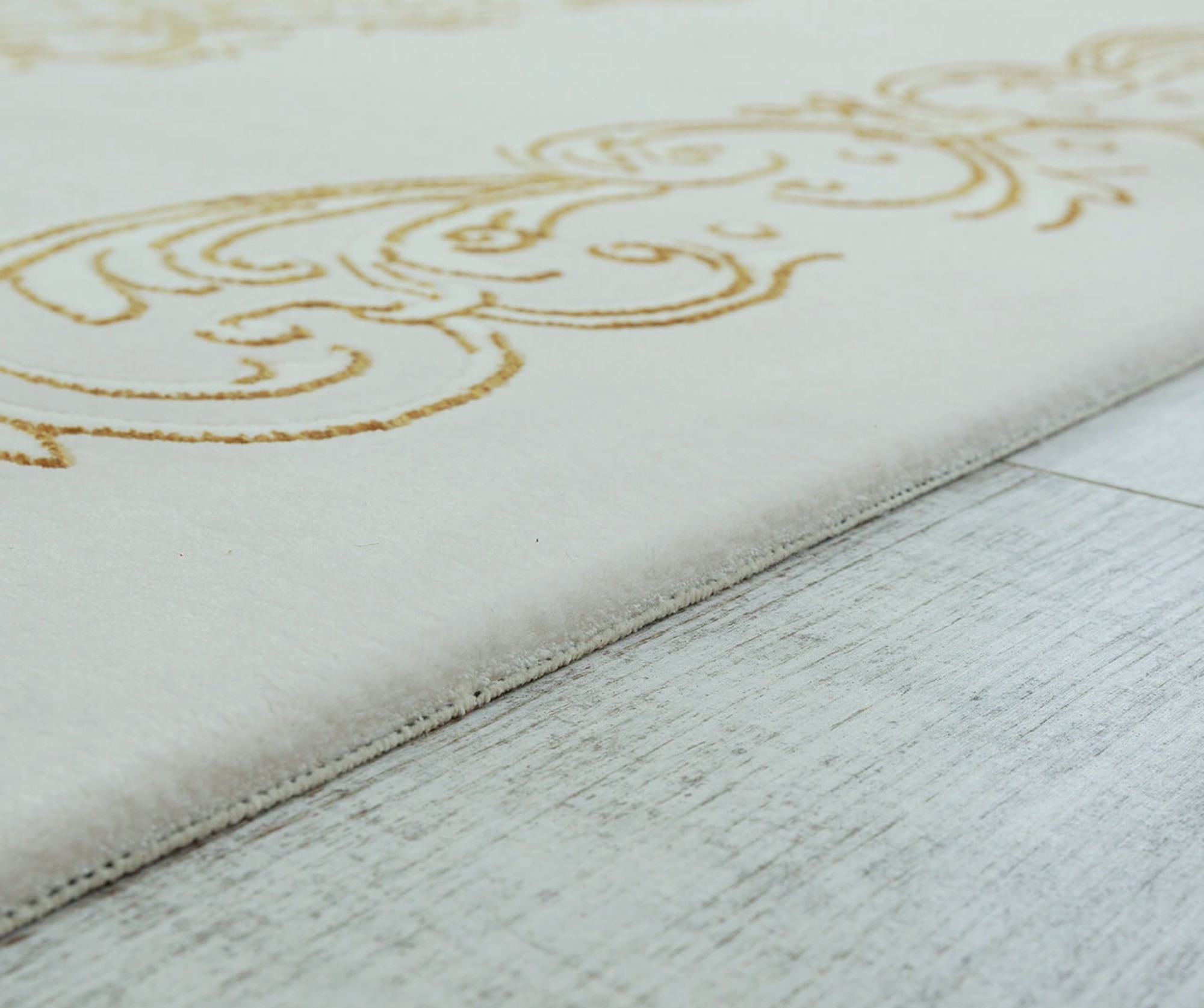 Турецький килим Ronesans витончений і ніжний у всіх сенсах. М'який, але в той же час щільний ворс килимів і тонка бахрома дивовижно гармоніюють з кольоровою гамою світлих відтінків і витіюватими візерунками. У виробництві використовується високоякісна акрилова нитка, яка робить килим довговічним і легким в прибиранні. Килим Ronesans приємно не тільки споглядати в інтер'єрі, але і торкатися до нього.