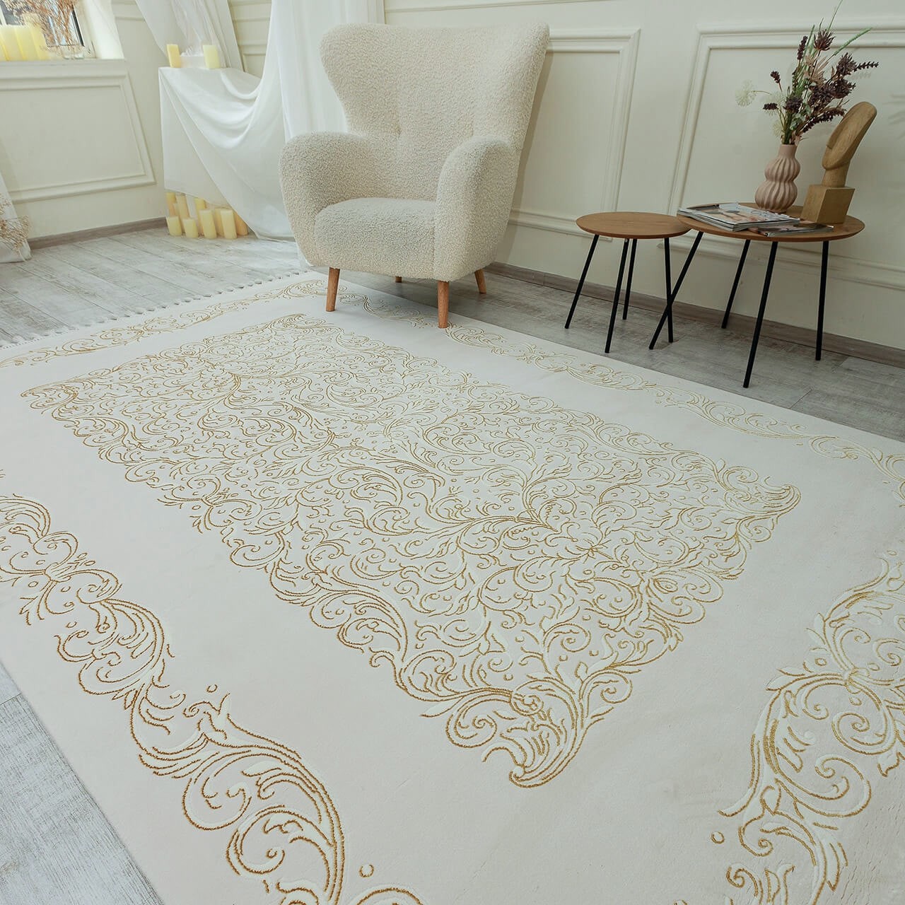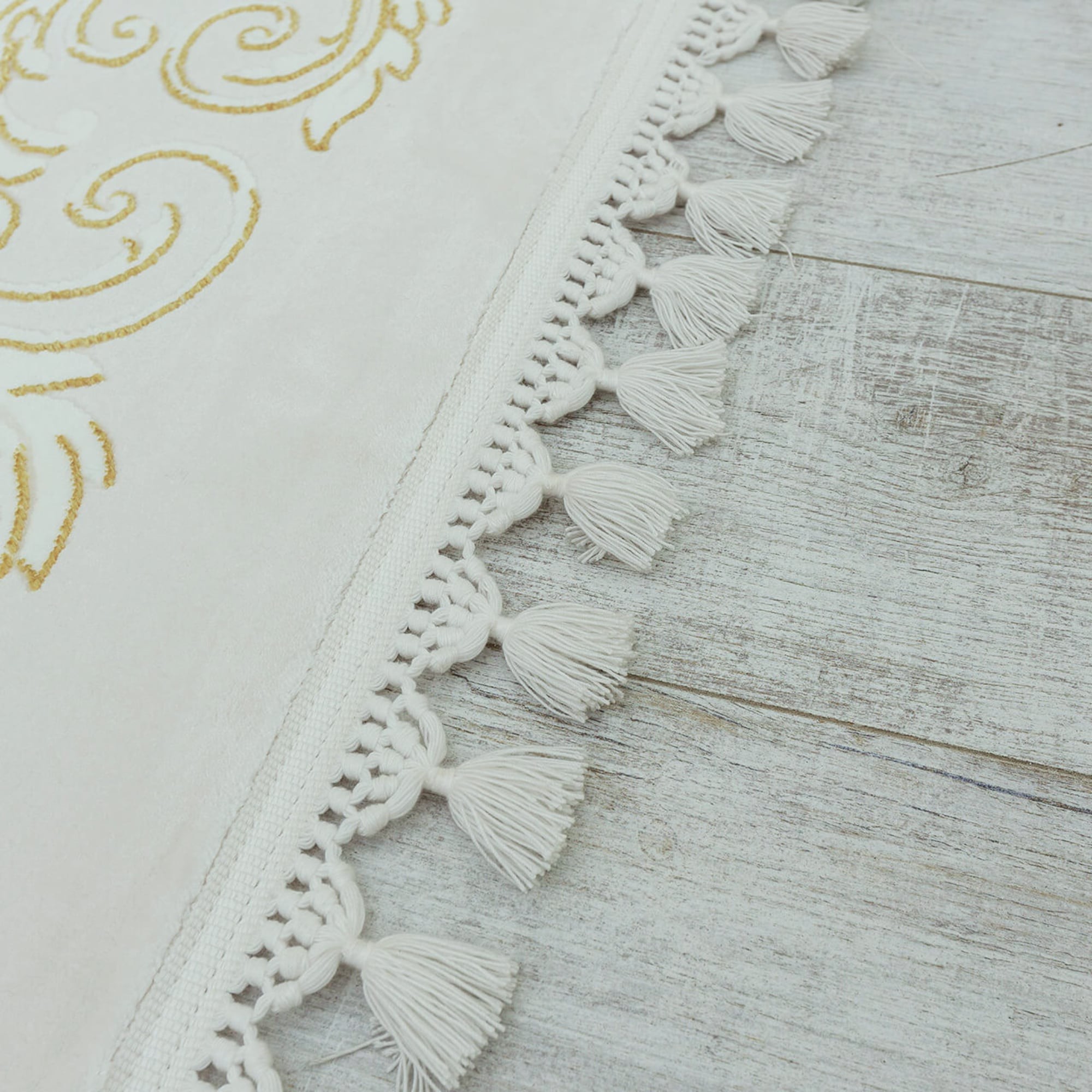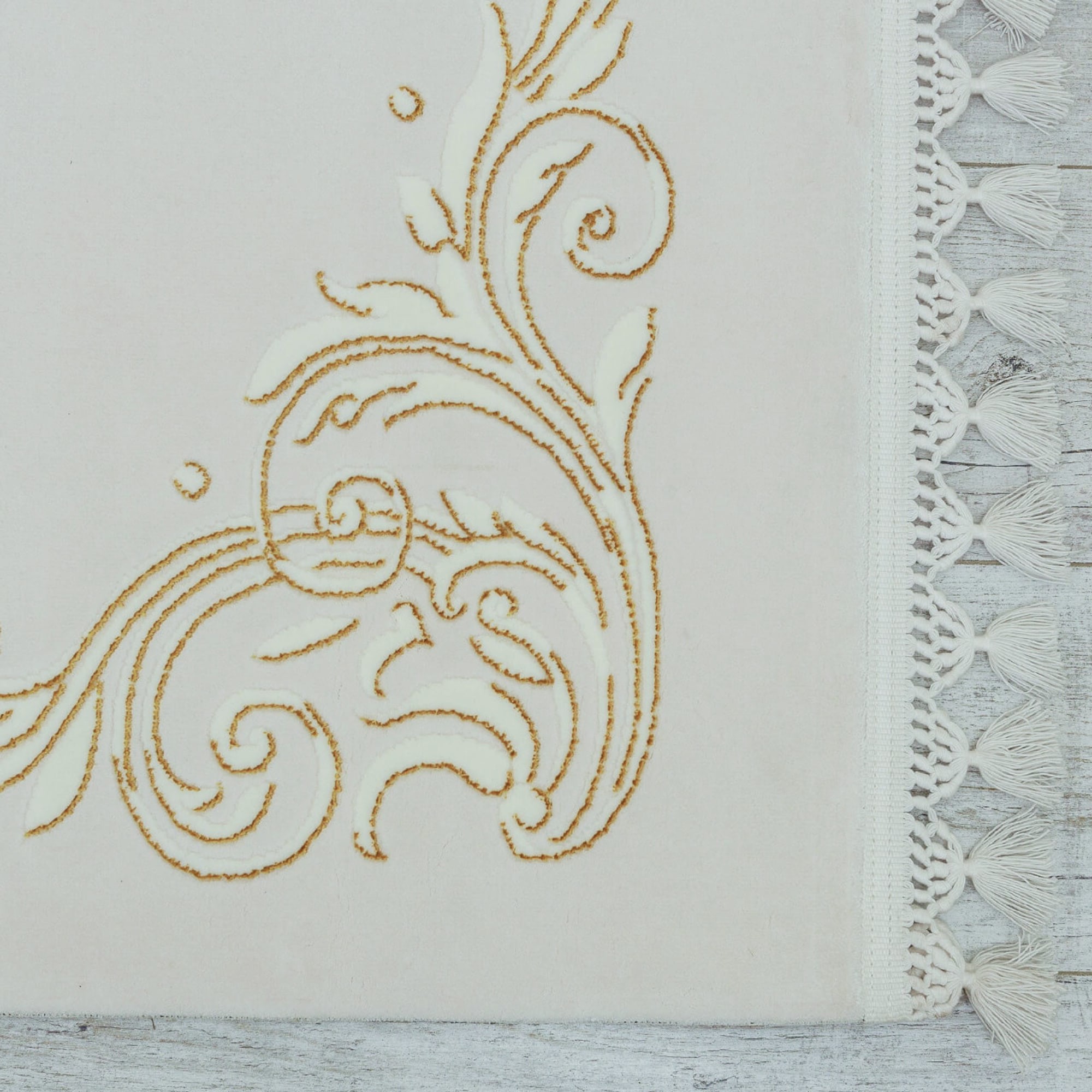 Турецький килим Ronesans витончений і ніжний у всіх сенсах. М'який, але в той же час щільний ворс килимів і тонка бахрома дивовижно гармоніюють з кольоровою гамою світлих відтінків і витіюватими візерунками. У виробництві використовується високоякісна акрилова нитка, яка робить килим довговічним і легким в прибиранні. Килим Ronesans приємно не тільки споглядати в інтер'єрі, але і торкатися до нього.