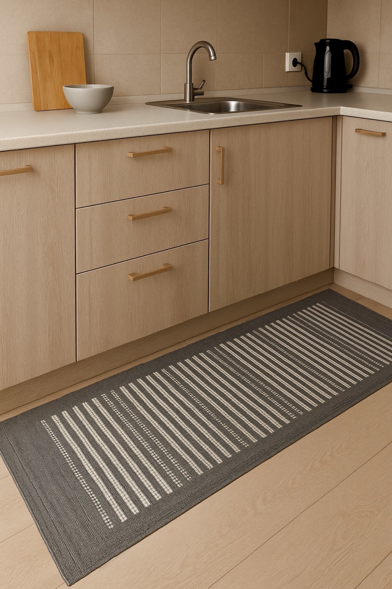 Современные и привлекательные цветовые комбинации помогут создать в вашем доме атмосферу уюта и комфорта. Добавьте в свое пространство элемент стиля с этим безворсовым ковром, который выполнен из прочного полипропилена в бежевом цвете.