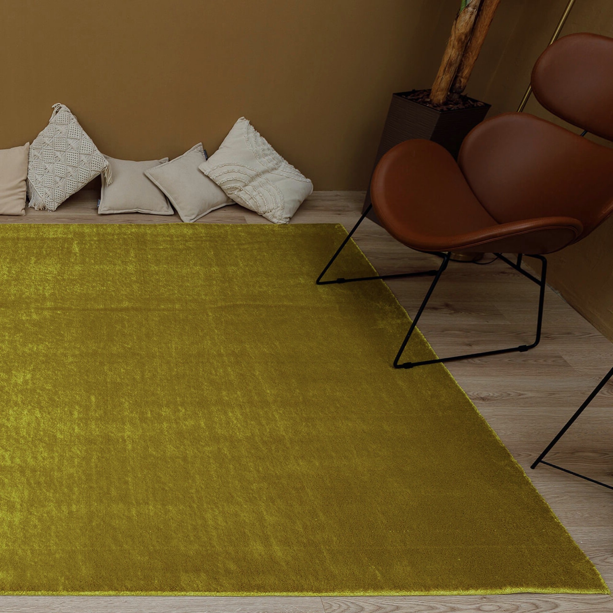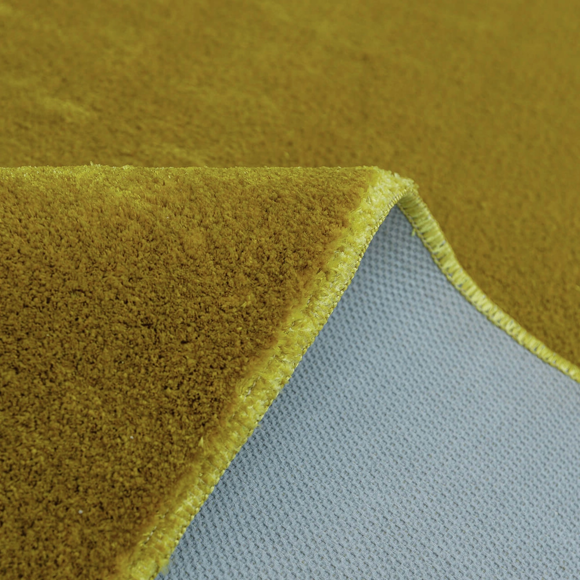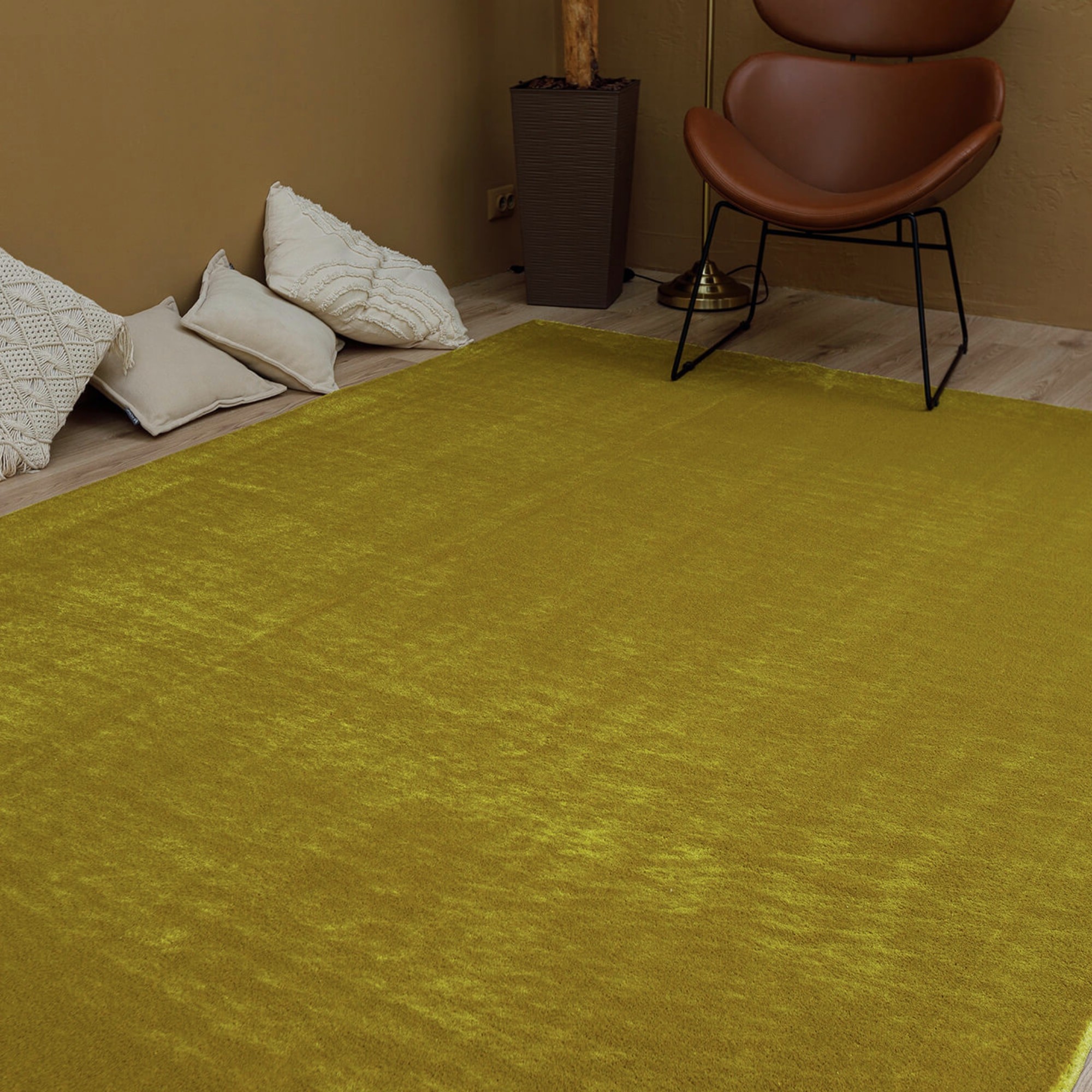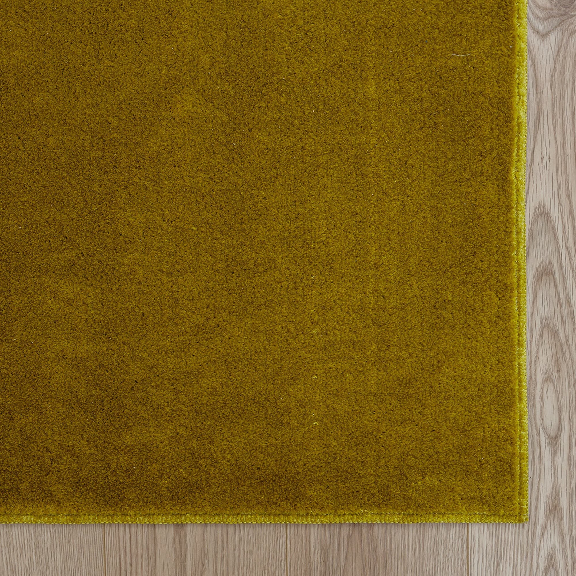 Ковер изготовлен из мягкого синтетического ворса, приятного на ощупь и простого в уходе. Однотонная поверхность подчеркивает чистоту линий и позволяет акцентировать внимание на мебели и декоре.
