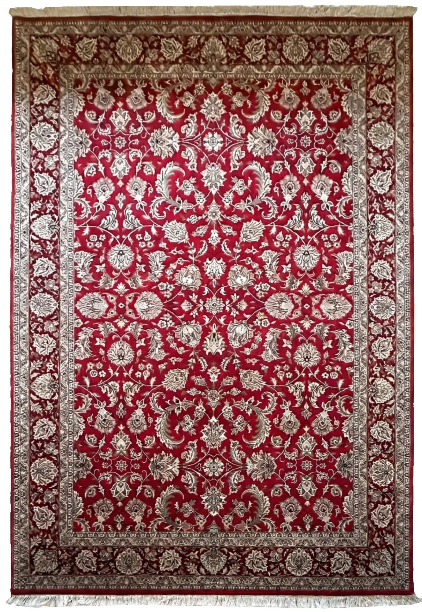 Вашему вниманию предлагается изысканный ковер ручной работы, выполненный в знаменитом стиле Индо-Исфахан. Это изделие является воплощением восточной классики, сочетая величие традиционных персидских дизайнов с мастерством индийских ковроделов. Такой ковер станет не просто элементом декора, а настоящим украшением интерьера, подчеркивающим статус владельца.