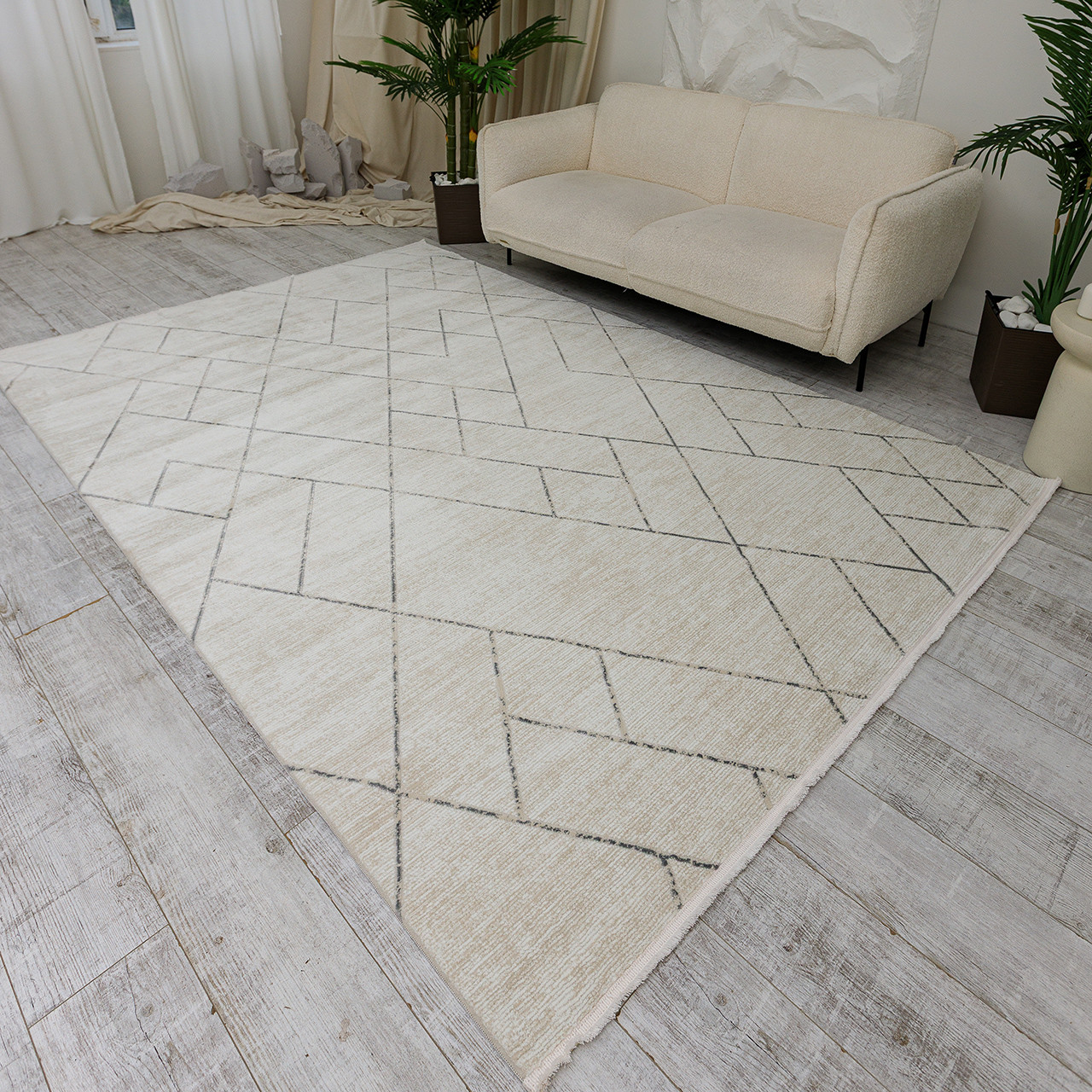 Турецький килимы Versay від компанії Koza – це ідеальний варіант для тих, хто цінує скандинавський стиль. Цей ніжний і приємний на дотик килим виготовлений із якісного поліестеру, що забезпечує йому відмінні експлуатаційні характеристики. Завдяки тканій основі, він не буде дряпати делікатну підлогу.