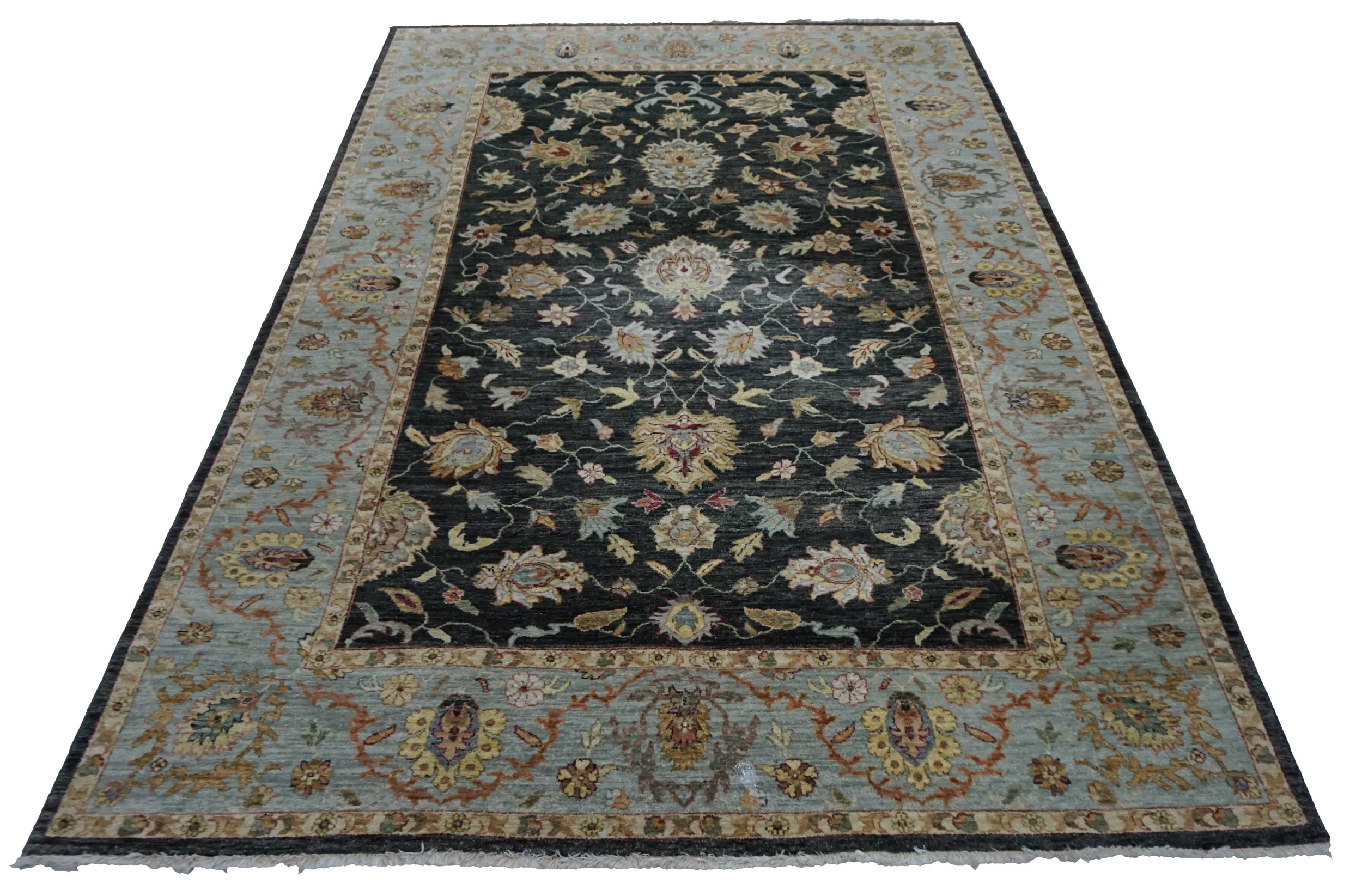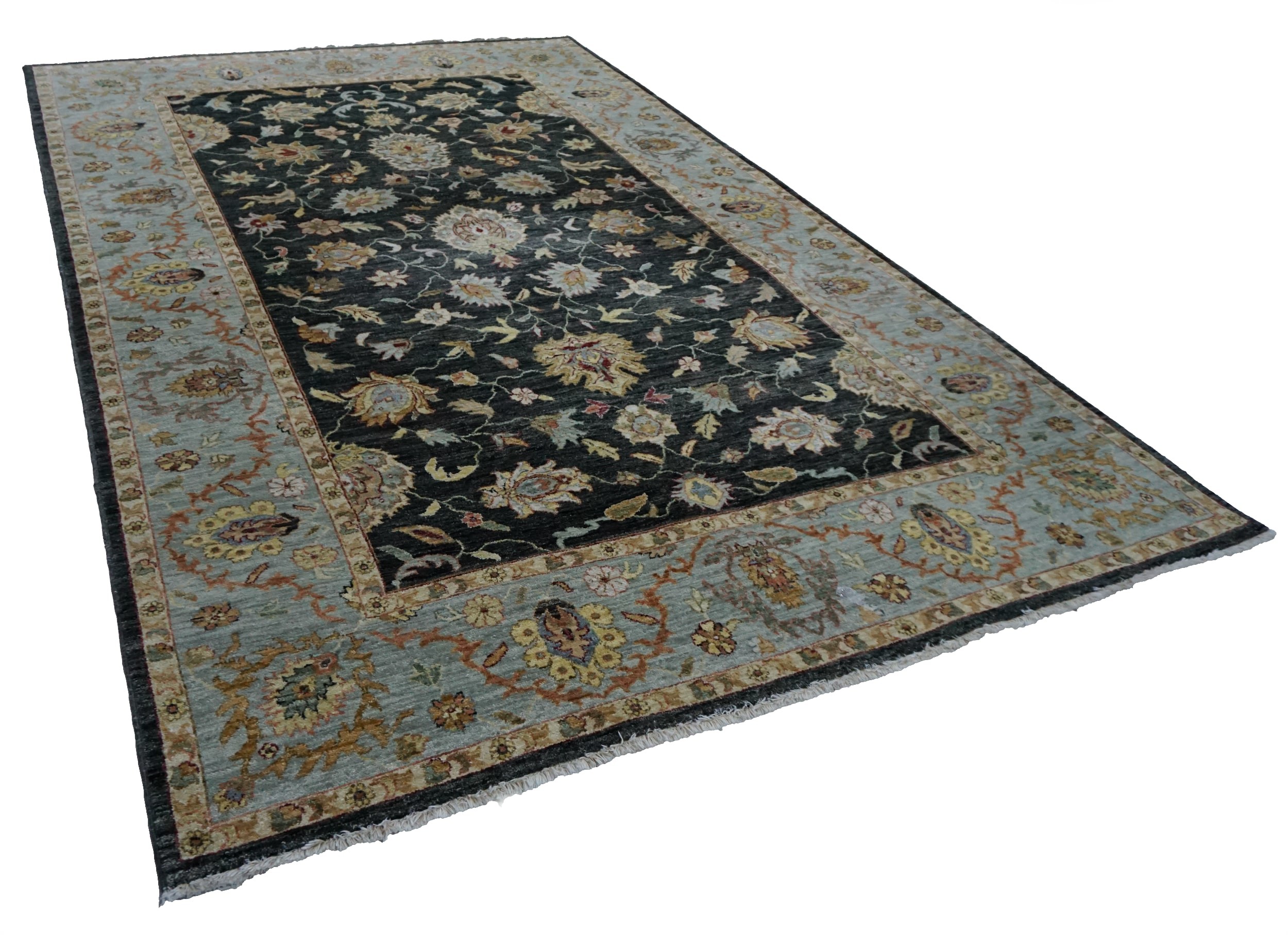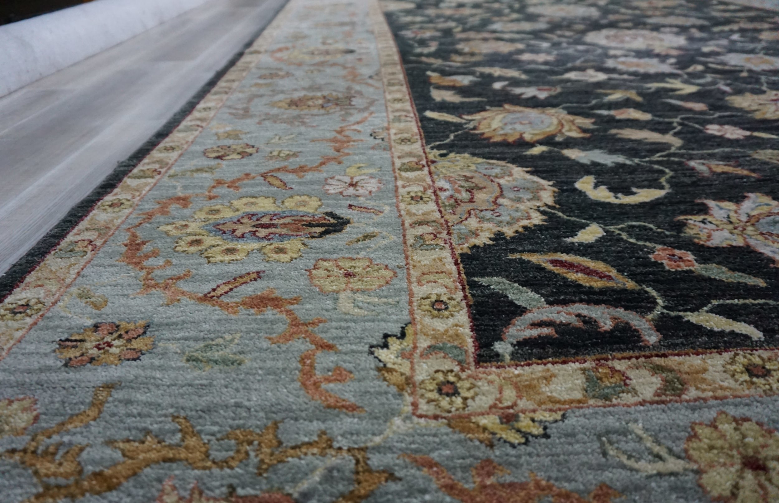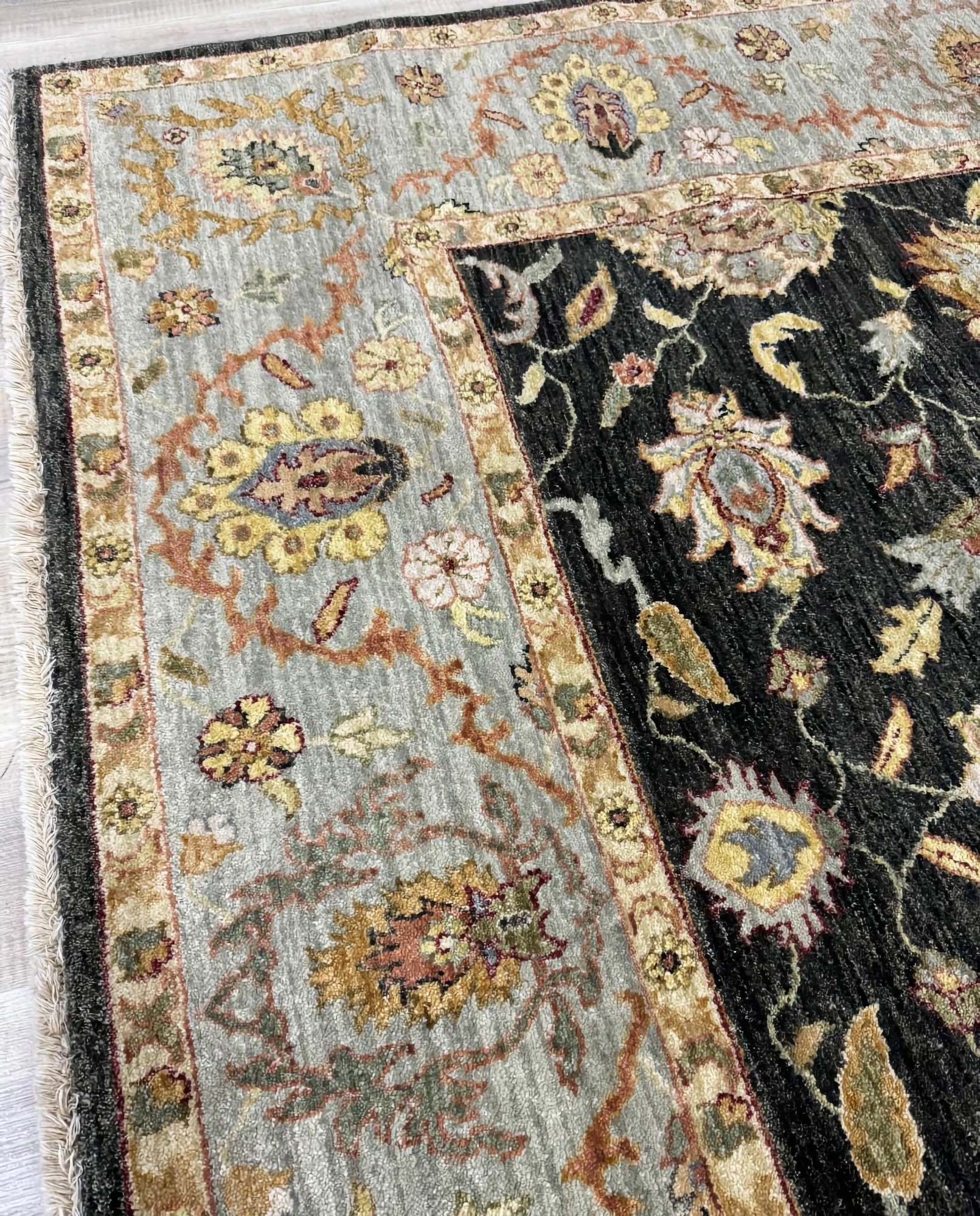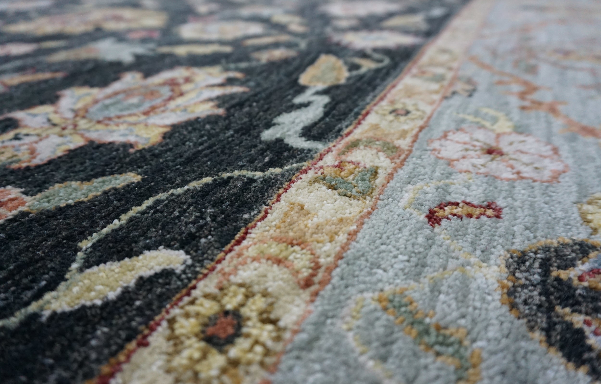 - Унікальна палітра: Глибоке, насичене темне поле (рідкість для Ziegler) ідеально контрастує з ніжним пастельним бордюром у блакитно-бежевих тонах.